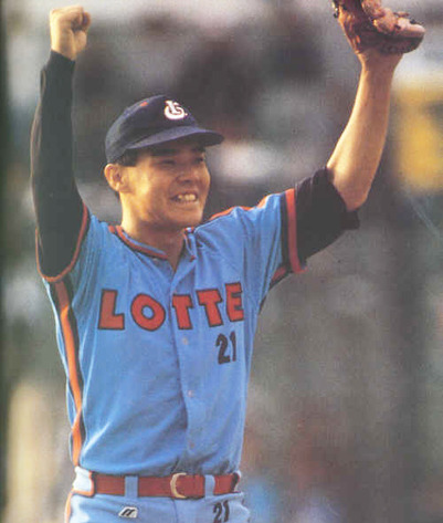 1992년 한국시리즈 우승 후 기뻐하는 박동희(롯데 자이언츠 제공)