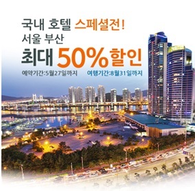 올 여름 국내여행, 호텔 예약을 서두르면 최대 반값까지 가능하다. 온라인 여행사 익스피디아는 21일부터 27일까지 일주일 동안 서울 및 부산의 주요 호텔 상품을 최대 50% 할된 가격에 제공하는 특가 프로모션을 진행한다고 밝혔다.