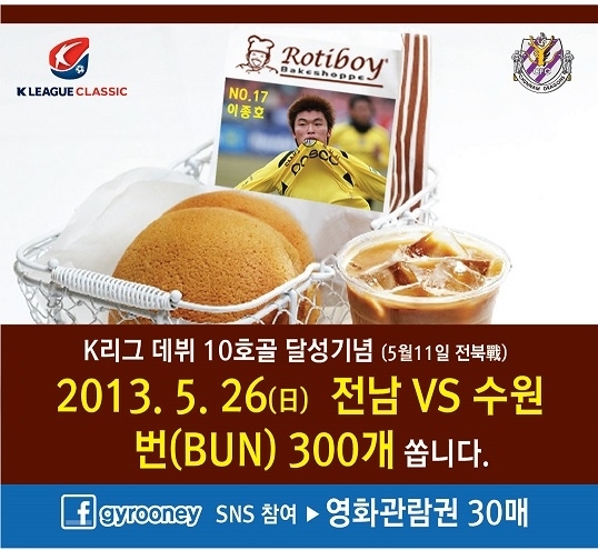 이종호는 고심 끝에 지난 해에 이어 로티보이 BUN을 선물하기로 결정했다. 또 경기장을 찾지 못하는 팬들을 위해 본인의 페이스북 페이지(www.facebook.com/gyrooney) 이벤트를 통해 영화관람권 30매(전국 어디서나 관람 가능)를 제공한다.