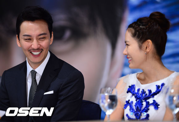 21일 오후 서울 강남구 대치동 컨벤션센터 디아망에서 열린 KBS 2TV 새 월화드라마 '상어'(극본 김지우, 연출 박찬홍 차영훈)'의 제작발표회에서 손예진과 김남길이 얘기를 나누며 미소짓고 있다.