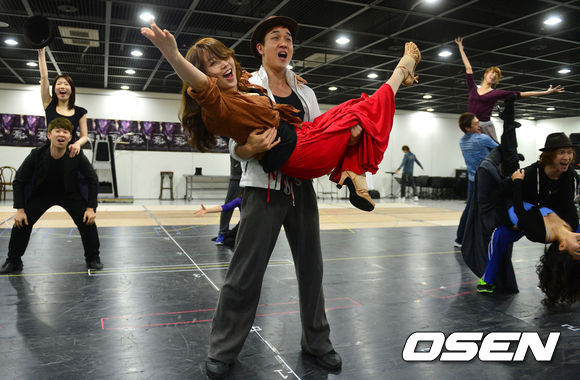21일 오후 서울 강북구 성신여자대학교 미아운정그린캠퍼스 연습실에서 열린 뮤지컬 '잭 더 리퍼' 현장공개에 참석한 배우들이 열연하고 있다.