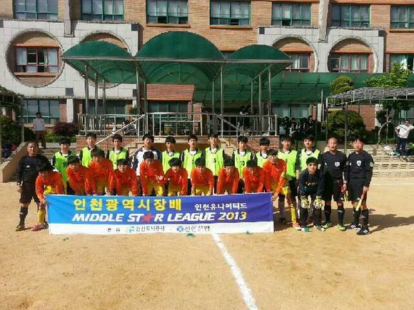 인천지역의 순수 아마추어 중학생들의 축구대제전인 '인천광역시장배 인천 유나이티드 미들스타리그 2013' 대회 첫날인 21일 열린 예선리그에서 계산중은 계수중을 맞아 이경규가 혼자 4골을 뽑아내는 맹활약과 서정우의 추가골에 힘입어 5-0으로 완승을 거두었다.