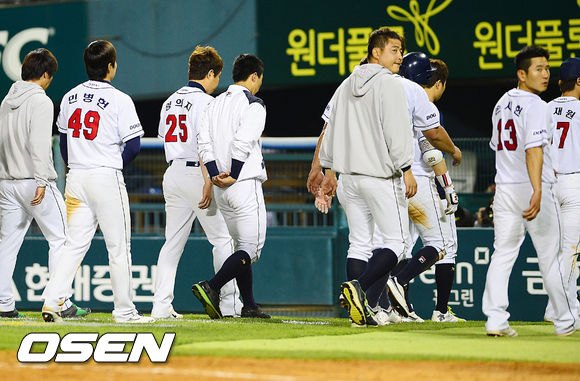 경기를 마치고 두산 선수들이 아쉬워하며 퇴장하고 있다. / rumi@osen.co.kr