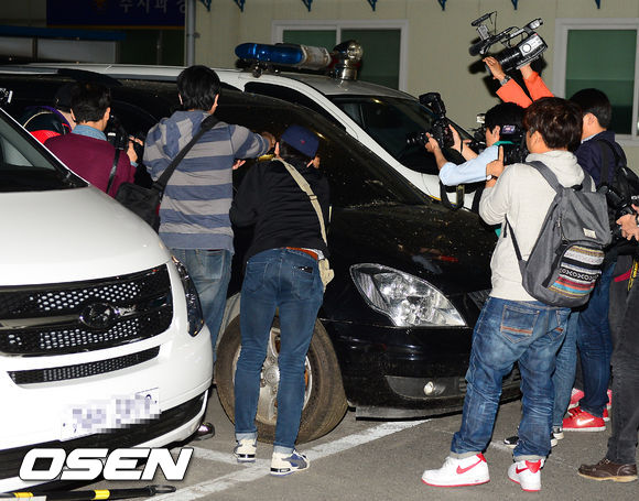 손호영 사건 추정차량을 취재하는 취재진들