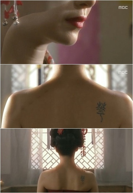 윤세아의 문신은 이연희가 기생이 됐을 당시 등에 새긴 것과 동일하기 때문이다. 흉터는 구월령(최진혁 분)이 죽기 전에 남긴 손톱자국이다.
