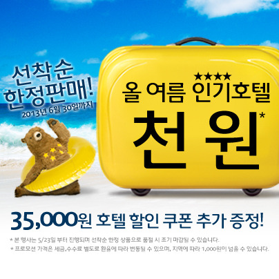 이번 프로모션은 서울뿐만 아니라 오사카와 도쿄, 하와이와 괌에 위치한 호텔 상품들을 1000원 특가에 제공한다. 고객 만족도가 높은 3, 4성급 호텔들로 구성됐으며 8월 31일까지 숙박 가능하다.