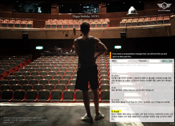 이날 프레인TPC 홈페이지(www.praintpc.com)는 현재 군복무 중인 김무열의 모습이 담긴 사진으로 메인 페이지를 장식했다. 김무열을 축하하기 위해 프레인TPC 여준영대표가 직접 찍은 사진으로 축하 페이지를 꾸민 것.이 메인 이미지는 지난해 일본 쓰릴미 공연 당시 연습 중인 김무열의 뒷모습을 찍은 비하인드 컷이다.