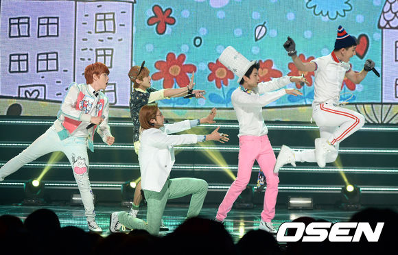 22일 오후 서울 광장동 유니클로 악스에서 진행된 MBC MUSIC '쇼! 챔피언'에서 B1A4가 화려한 무대를 선보이고 있다.