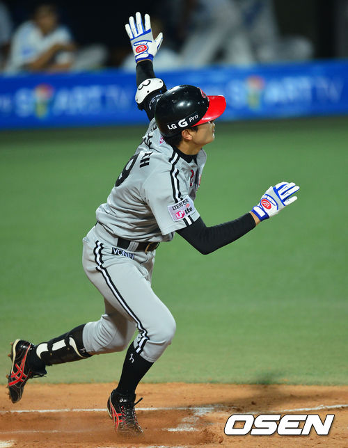 22일 오후 대구구장에서 '2013 한국야쿠르트 세븐 프로야구' 삼성 라이온즈 대 LG 트윈스와의 경기가 열렸다. 7회초 LG 공격 무사 1루 상황 6번 문선재가 좌월 투런포를 날리고 있다.