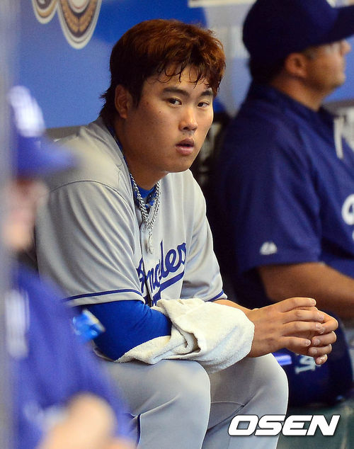 LA다저스 류현진이 마운드를 내려온 후 덕아웃에서 경기를 지켜보고 있다. / baik@osen.co.kr