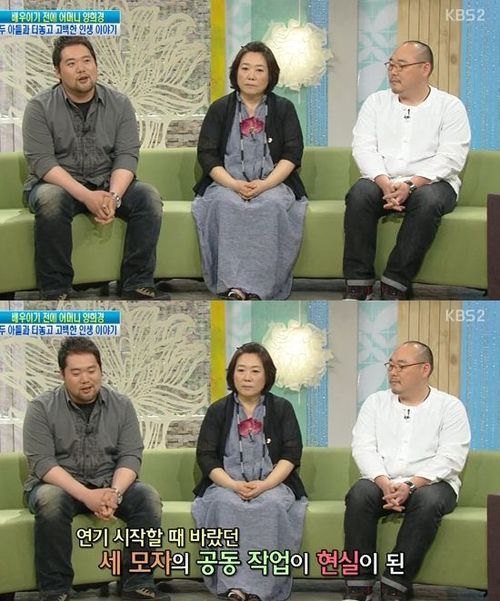 한원균, 한승현은 23일 오전 방송된 KBS 2TV '여유만만’에 양희경과 함께 출연, 어린 시절 어머니의 유명세 때문에 겪어야 했던 기억을 이야기했다.