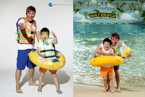 MBC '일밤-아빠! 어디가?'로 인기를 끌고 있는 윤민수 윤후 부자가 워터파크 광고를 촬영했다.