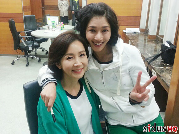 사진 속에는 선우선과 전인화가 드라마 촬영 중 대기실에서 다정한 포즈를 취하고 있다. 선우선은 전인화에게 다정하게 어깨동무를 한 채 한 손으로 브이(V)자를 그리며 환하게 웃고 있다.