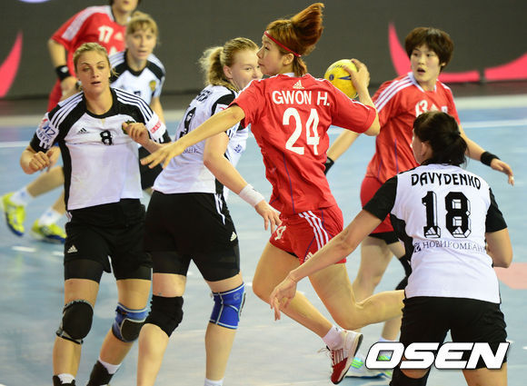 한국은 23일 서울 송파구 방이동 서울 SK핸드볼경기장에서 열린 올림픽제패기념 2013 서울컵 국제여자핸드볼대회 러시아와의 개막경기에서 35-31로 완승을 거뒀다. 최수민이 양팀 통틀어 가장 많은 9득점을 올렸고 류은희와 권한나가 나란히 7점씩 꽂았다.