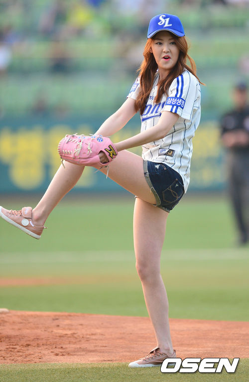 23일 오후 대구구장에서 '2013 한국야쿠르트 세븐 프로야구' 삼성 라이온즈 대 LG 트윈스와의 경기가 열렸다. 시구자로 나선 2011 미스코리아 선 출신인 방송인 김이슬이 와인드업하고 있다.