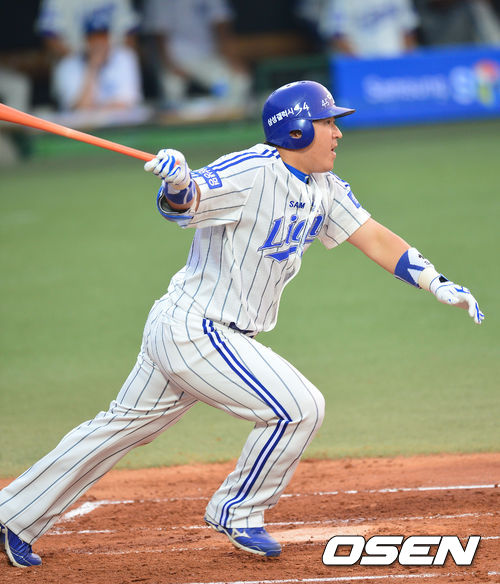 23일 오후 대구구장에서 '2013 한국야쿠르트 세븐 프로야구' 삼성 라이온즈 대 LG 트윈스와의 경기가 열렸다. 1회말 삼성 공격 1사 1, 3루 상황 4번 최형우가 선제 1타점 적시타를 날리고 있다.