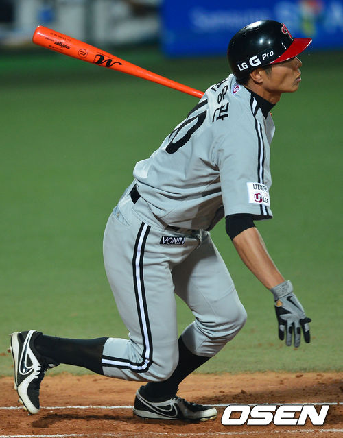 23일 오후 대구구장에서 '2013 한국야쿠르트 세븐 프로야구' 삼성 라이온즈 대 LG 트윈스와의 경기가 열렸다. 6회초 LG 공격 무사 1루 상황 9번 권용관이 안타를 날리고 있다.