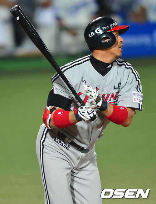 23일 오후 대구구장에서 '2013 한국야쿠르트 세븐 프로야구' 삼성 라이온즈 대 LG 트윈스와의 경기가 열렸다. 6회초 LG 공격 2사 1, 2루 상황 3번 이병규가 1타점 동점 적시타를 날리고 있다.