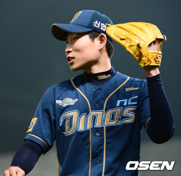 23일 오후 문학 야구장에서 열린 '2013 한국야쿠르트 세븐 프로야구' SK 와이번스와 NC 다이노스 경기,6회말 수비를 마친 NC 선발 이재학이 덕아웃을 향하며 권희동의 멋진수비에 박수를 보내고 있다.