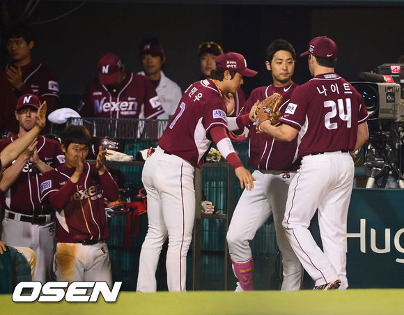 지난 15일 목동 한화전부터 4경기 연속 두자릿수 안타를 기록한 넥센(25승11패)은 이날 승리로 4연승을 달리며 이날 LG에 패한 삼성(25승12패)을 제치고 5일 만에 단독 선두로 다시 올라섰다. 반면 두산은 전날에 이어 선발이 무너지며 2연패에 빠졌다. / rumi@osen.co.kr