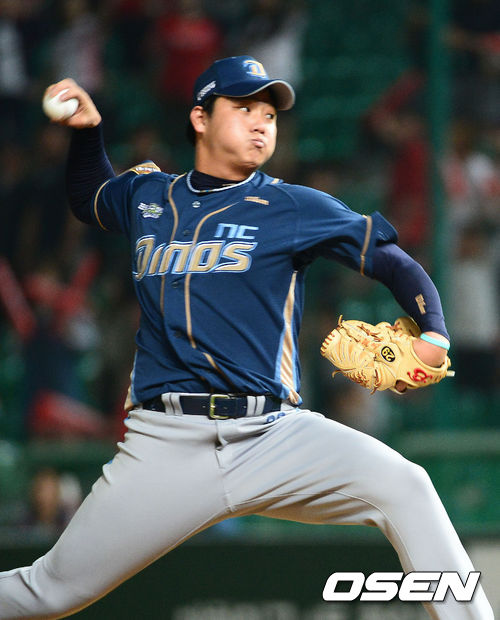 23일 오후 문학 야구장에서 열린 '2013 한국야쿠르트 세븐 프로야구' SK 와이번스와 NC 다이노스 경기,9회말 2사 3루 이민호가 공을 뿌리고 있다.