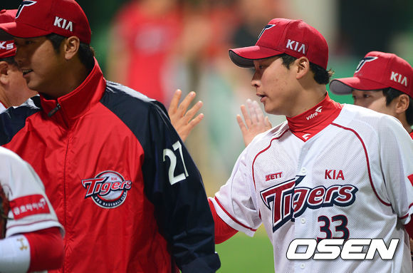 경기 종료 후 KIA 김주형이 선동렬 감독과 승리의 기쁨을 나누고 있다. /sunday@osen.co.kr
