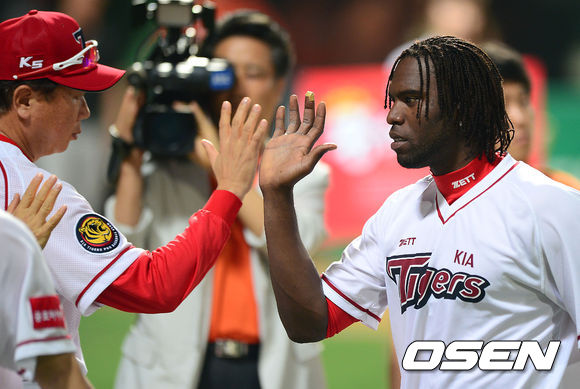 경기 종료 후 KIA 소사가 선동렬 감독과 승리의 기쁨을 나누고 있다. /sunday@osen.co.kr