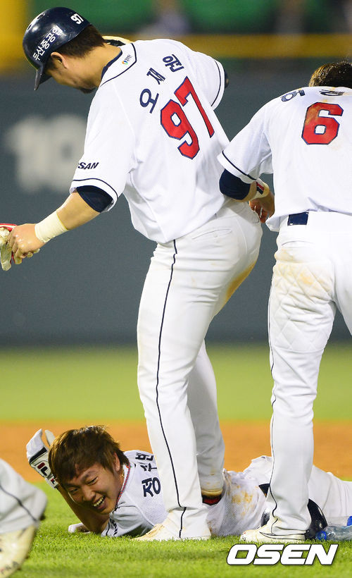 끝내기 정수빈,'밟혀도 좋아!'