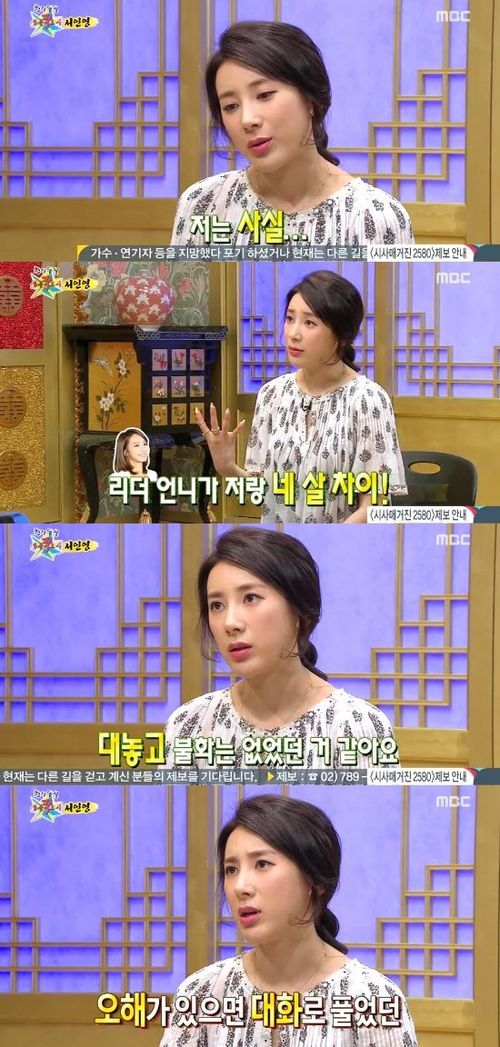 앞서 MC 강호동은 서인영에게 쥬얼리 내의 불화설에 대해 질문했고 서인영은 "치고 받고 싸웠으면 그 때 못했을 거다"라고 답했다. 이어 그는 "지현 언니가 계속 몸이 아프다고 했었다. 지병이 있거나 그런 건 아니지만 몸이 굉장히 허약했다"며 그 때를 추억했다.