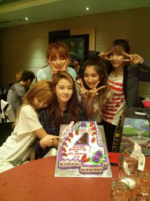 걸그룹 포미닛이 양손 브이 단체사진으로 멤버 허가윤의 생일을 축하했다.