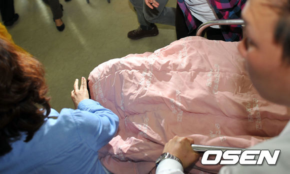 응급치료가 끝난 손호영이 병실로 이동하고 있다.