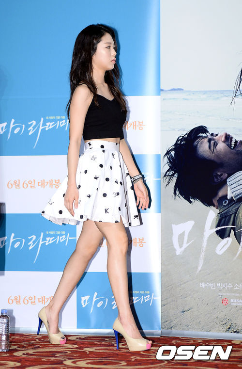 24일 오후 서울 자양동 롯데시네마 건대입구점에서 진행된 '마이 라띠마' 언론배급시사회에서 박지수가 무대를 나서고 있다.