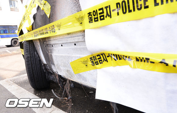 서울 용산구 원효로 사고지역 인근 서울용산경찰서 방범순찰대 앞 주차장에 손호영 사고 차량이 주차되어 있다. / soul1014@osen.co.kr