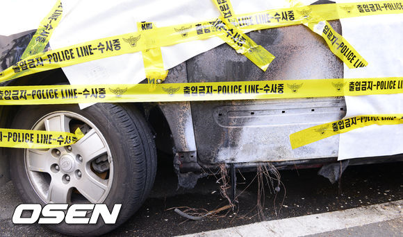 서울 용산구 원효로 사고지역 인근 서울용산경찰서 방범순찰대 앞 주차장에 손호영 사고 차량이 주차되어 있다. / soul1014@osen.co.kr