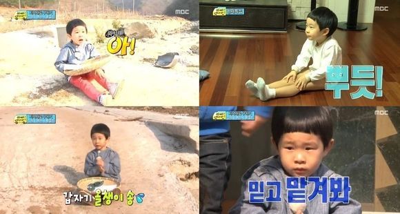 MBC 예능 프로그램 '아빠 어디가'에 혜성같이 등장한 김민율이 오빠놀이에 푹 빠졌다.