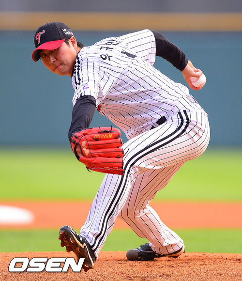 24일 오후 서울 잠실구장에서 열린 '2013 한국야쿠르트 세븐 프로야구' LG 트윈스와 SK 와이번스의 경기, 1회초 LG 선발투수 우규민이 역투하고 있다.