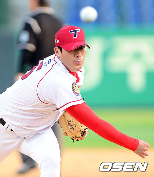 24일 오후 광주 무등야구장에서 열린 '2013 한국야쿠르트 세븐 프로야구' KIA 타이거즈와 NC 다이노스의 경기, 1회초 무사에서 KIA 선발 투수 서재응이 힘차게 공을 던지고 있다.