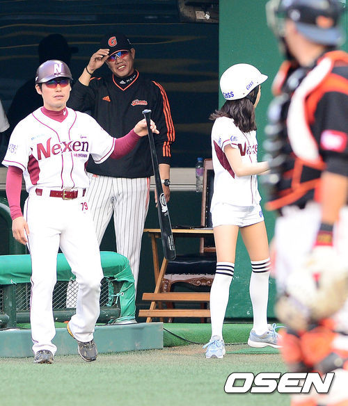 24일 오후 서울 목동야구장에서 열린 '2013 한국야쿠르트 세븐 프로야구' 넥센 히어로즈와 롯데 자이언츠의 경기, 1회초 무사에서 롯데 김시진 감독이 넥센 장기영의 배트가 헛스윙 삼진에 더그아웃으로 날아오자 자리에서 일어나 미소짓고 있다.