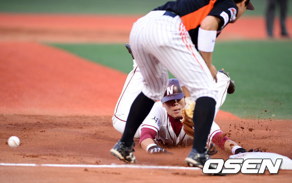 24일 오후 서울 목동야구장에서 열린 '2013 한국야쿠르트 세븐 프로야구' 넥센 히어로즈와 롯데 자이언츠의 경기, 2회초 1사 2루에서 3루 도루를 시도한 넥센 강정호가 롯데 황재균이 볼을 빠뜨리며 도루에 성공하고 있다.