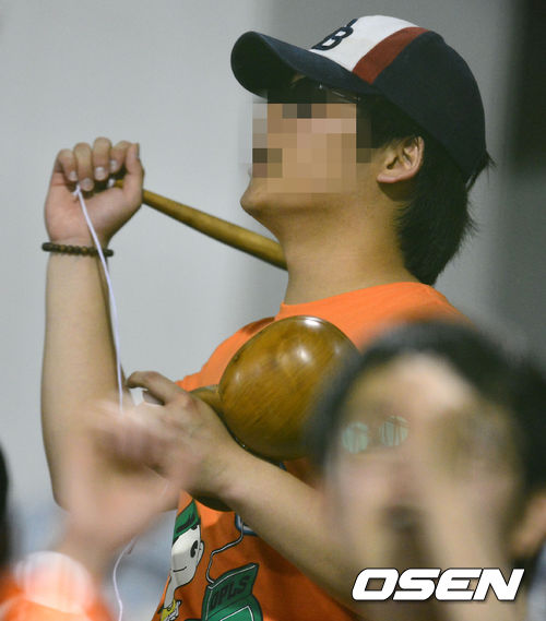 24일 오후 대전구장에서 '2013 한국야쿠르트 세븐 프로야구' 한화 이글스 대 삼성 라이온즈의 경기가 열렸다. 8회말 한화 공격 8-1로 삼성에게 뒤지고 있는 상황, 한화팬이 목탁을 들고 응원을 펼치고 있다.