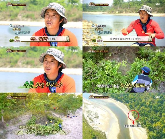 개그맨 김병만이 야생동물들의 습격에 대비해 위장 하우스 짓기를 선택했다.