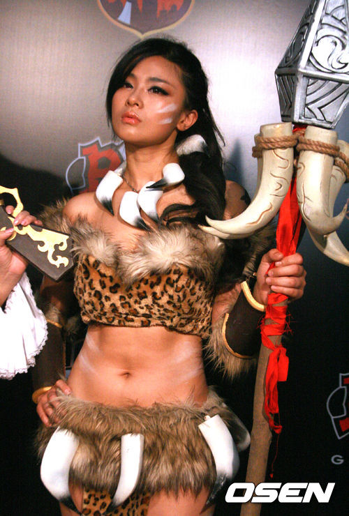 '웨이샤오' 가오 쉐청이 속한 중국과 '더블리프트' 피터 펭이 속한 미국 팀의 경기가 열리기전 포토월에서 한채아를 꼭 빼닮은 모델이 인기 캐릭터 니달리를 코스튬플레이 하고 있다.