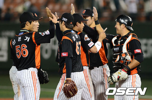 그 순간 기쁨의 세리머니를 한 건 강민호만이 아니었다. 강민호의 송구가 2루로 향할 때 2루수 정훈은 뒤로 백업을 갔다. 그리고 2루에서 유재신이 잡히자 자신이 마치 아웃을 시킨 것처럼 두 손을 하늘로 뻗어 기쁨을 발산했다.
