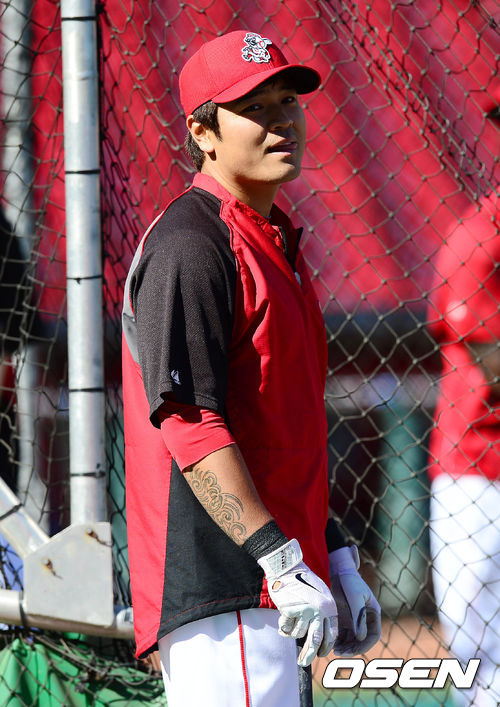 25일 오전(이하 한국시간) 미국 오하이오주 신시내티 그레이트 아메리칸 볼파크에서 열리는 신시내티 레즈와 시카고 컵스의 경기 시작 전 추신수가 훈련을 하고 있다.