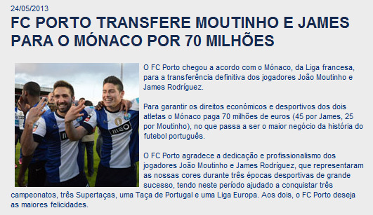 '거상' 포르투가 팀의 기둥 주앙 무티뉴와 하메스 로드리게스를 AS 모나코에 내주고 7000만 유로(약 1021억 원)의 거액을 움켜쥐었다.