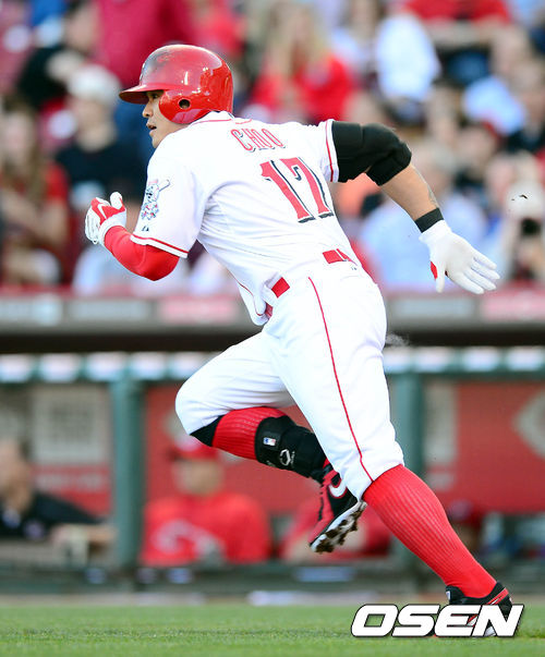 25일 오전(이하 한국시간) 미국 오하이오주 신시내티 그레이트 아메리칸 볼파크에서 열린 신시내티 레즈와 시카고 컵스의 경기 1회말 선두타자 추신수가 유격수 땅볼을 치고 달리고 있다.