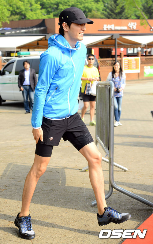 25일 오전 경기도 과천시 서울대공원에서 진행된 '2013 데상트 트레일 레이스'에 참가한 이진욱이 포토월로 입장하고 있다.
