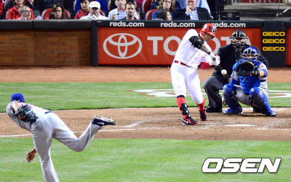 25일 오전(이하 한국시간) 미국 오하이오주 신시내티 그레이트 아메리칸 볼파크에서 열린 신시내티 레즈와 시카고 컵스의 경기 7회말 1사 추신수가 좌익수 플라이를 치고 있다.