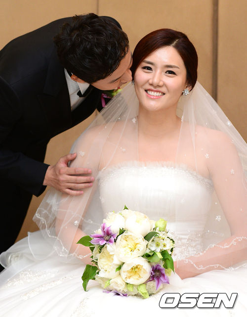 구리 KDB생명의 강영숙(31)이 25일 오후 서울 아펠가모 잠실점에서 김장석(34) 씨와 웨딩마치를 울렸다.