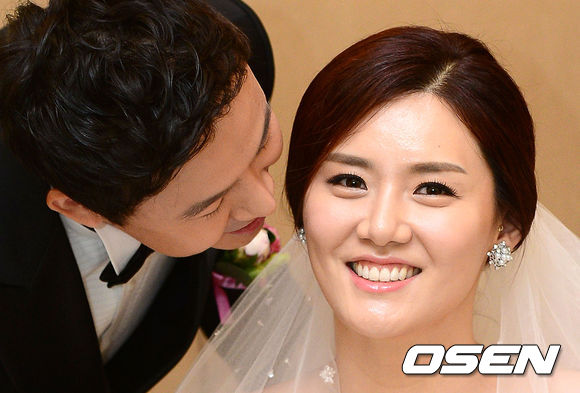 구리 KDB생명의 강영숙(31)이 25일 오후 서울 아펠가모 잠실점에서 김장석(34) 씨와 웨딩마치를 울렸다.